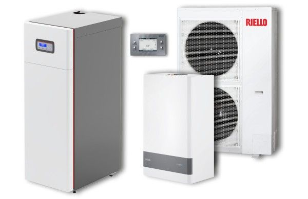 – Simple and intuitive control panel with large backlit display, featured by advanced management logics of the hybrid system, in order to ensure maximum efficiency by giving priority to the most efficient heat source according to the outside temperature. The panel allows the full parametrisation of the system, as well as displaying the operating status. It is supplied with heat pump, complete with bracket, to be positioned directly inside the rooms.